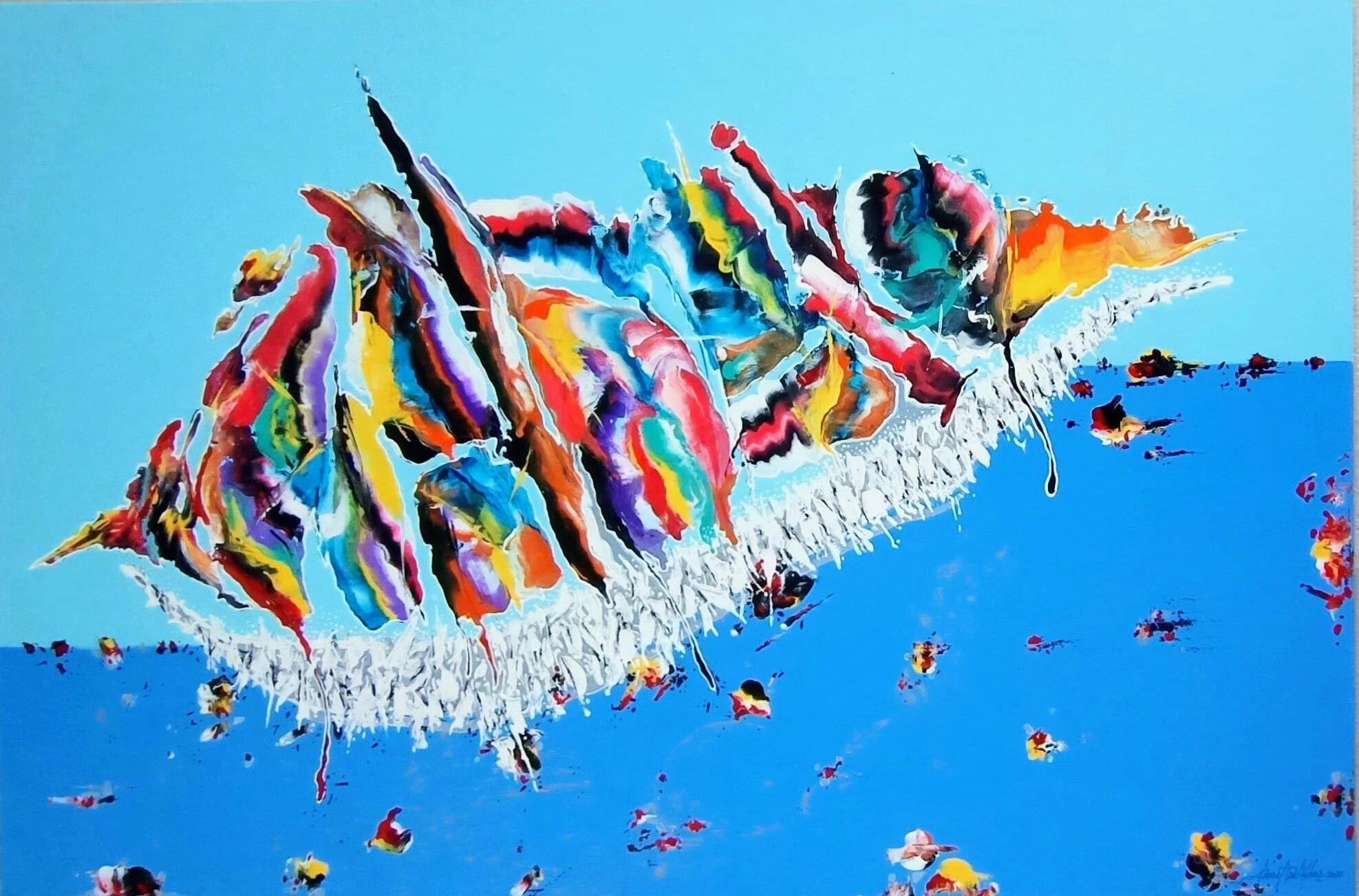 | Ahmet Çelikbaş | Ahmet Çelikbaş’ın bu çarpıcı eserinde renkler adeta özgürlüğün izini sürüyor. Gökyüzü ile suyun arasında asılı duran soyut form, enerjisi yüksek fırça darbeleri ve canlı renk geçişleriyle izleyiciyi içine çekiyor. Hareket, dönüşüm ve içsel akışın bir arada hissedildiği bu kompozisyon, Çelikbaş’ın soyut anlatımdaki ustalığını bir kez daha ortaya koyuyor. Mekâna dinamizm ve modern bir estetik katmak isteyenler için güçlü bir ifade sunuyor. |