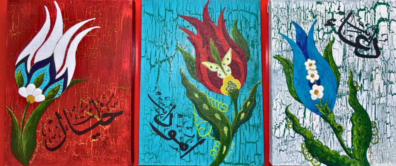 Sanatçı Almula Yenikazancı’nın bu özel set çalışması, lale motifinin zarafeti ile “Hayal Et”, “Umut Et” ve “Dua Et” kavramlarını bütünsel bir sanatsal anlatıyla sunuyor. Çatlatma tekniği ve canlı renk geçişleriyle zenginleştirilen dokulu zeminler, geleneksel hat sanatının estetiğini modern bir kompozisyonda buluşturuyor. Her bir tablo, ruhsal bir yolculuğun farklı aşamalarını simgeleyerek yaşam alanlarınıza derinlikli bir anlam katmayı vaat ediyor.